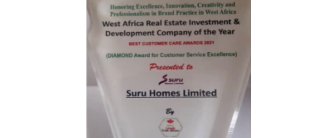 Suru Homes, a real estate investment and development company in Lagos has been conferred with the Diamond Award for Customer Service Excellence (Best Customer Care Award 2021) – West Africa Real Estate Investment and Development Company of the year at the West Africa Innovation Awards2021.